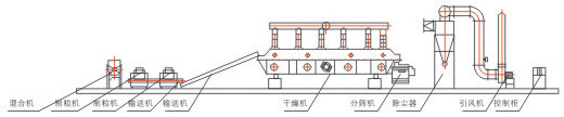 鸡精有一定的粘性易粘在干燥机床面上造成干燥无法进行。我公司为解决这一问题采取了多种措施。鸡精挤压造粒成型后,表面水份较高,我公司生产的流化床一段采取了低温大风量预干燥,使鸡精表面水份迅速降低,同时表面粘度也有所降低。流化床二段采取中温大风量干燥,以进一步降低鸡精表面水份。流化床第三段采取中温常规风量干燥,使鸡精在流化床内有充分的停留时间以获得有效的干燥。流化床第四段采取大风量冷却,便于鸡精在筛粉后能直接包装。总之,为了满足鸡精在不同阶段的工艺要求,床面的开孔率及开孔方向以及风机选型均有相应的设计规范。