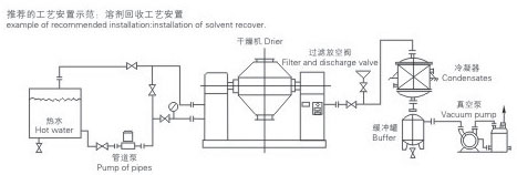 ● 物料处于真空状态,蒸汽压下降使物料表面的水份(溶剂)达到饱和状态而蒸发了,并由真空泵及时排出回收。物料内部的水份(溶剂)不断的向表面渗透、蒸发、排出,三个过程不断进行,物料在很短时间内达到干燥目的。