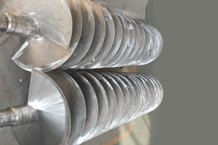 空心螺旋真空干燥机采用大面积传导搅拌真空结构,实现真空环境下连续进料、出料。设备主要组成部分有:主轴(空心)、螺旋叶片(空心)、壁面(半管式)等几个部分;壳体为W型,壳体内一般安排二根空心螺旋轴;壳体有密封端盖与上盖,防止物料粉尘外泄而充分发挥作用。根据物料温度要求可以选用不同的媒介质进行加热:如热水、蒸汽、导热油。传热介质通过旋转接头,流经壳体夹套及空心螺旋轴。物料投入可通过专用加料装置连续进料,依靠操作螺旋的转速来控制物料的停留时间,达到终干燥目的后再从出料口连续的排料。