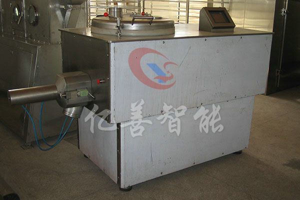 粉体物料与粘合剂在圆筒形容器中由底部混合浆充分混合成湿润软材,然后由侧置的高速粉碎桨切割成均匀的湿颗粒。