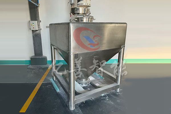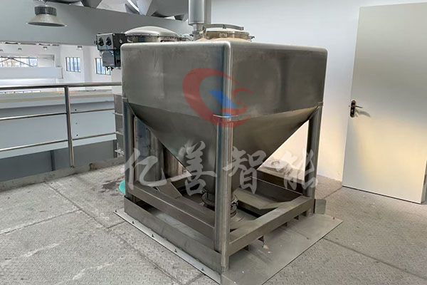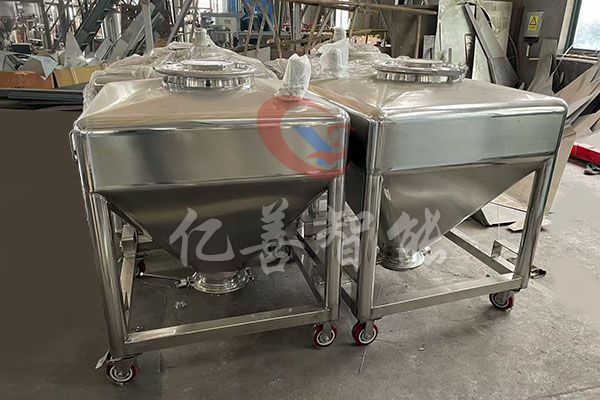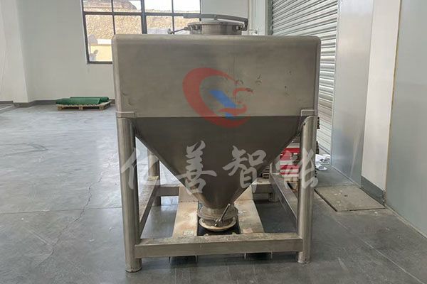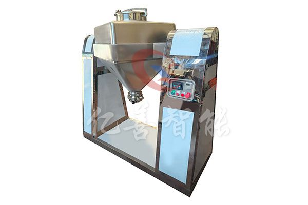 物料通过人工、真空上料、楼层落料或专用提升机进入混合筒内,料斗对称的轴线与回转轴轴线连成一夹角,不同组分物料在密闭的料斗种进行三维空间运动,产生强烈翻转和扩散收缩作用,达到良好的混合效果。