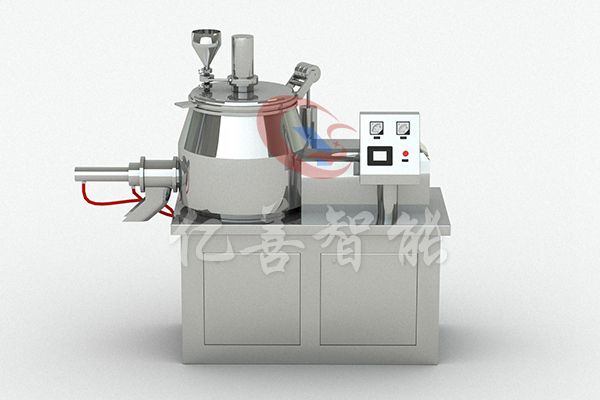 粉体物料与粘合剂在圆筒形容器中由底部混合浆充分混合成湿润软材,然后由侧置的高速粉碎桨切割成均匀的湿颗粒。