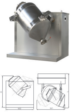 结构:该机由机座、传动系统、电器控制系统、多向运动机构、混合筒等部件组成。与物料直接接触的混合筒采用优质不锈钢材料制造,桶体内外壁均经镜面抛光。
