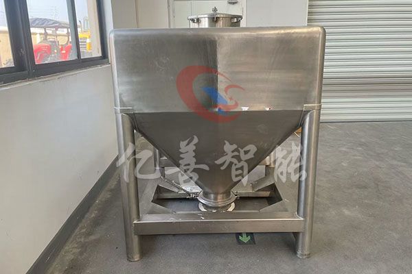 物料通过人工、真空上料、楼层落料或专用提升机进入混合筒内,料斗对称的轴线与回转轴轴线连成一夹角,不同组分物料在密闭的料斗种进行三维空间运动,产生强烈翻转和扩散收缩作用,达到良好的混合效果。